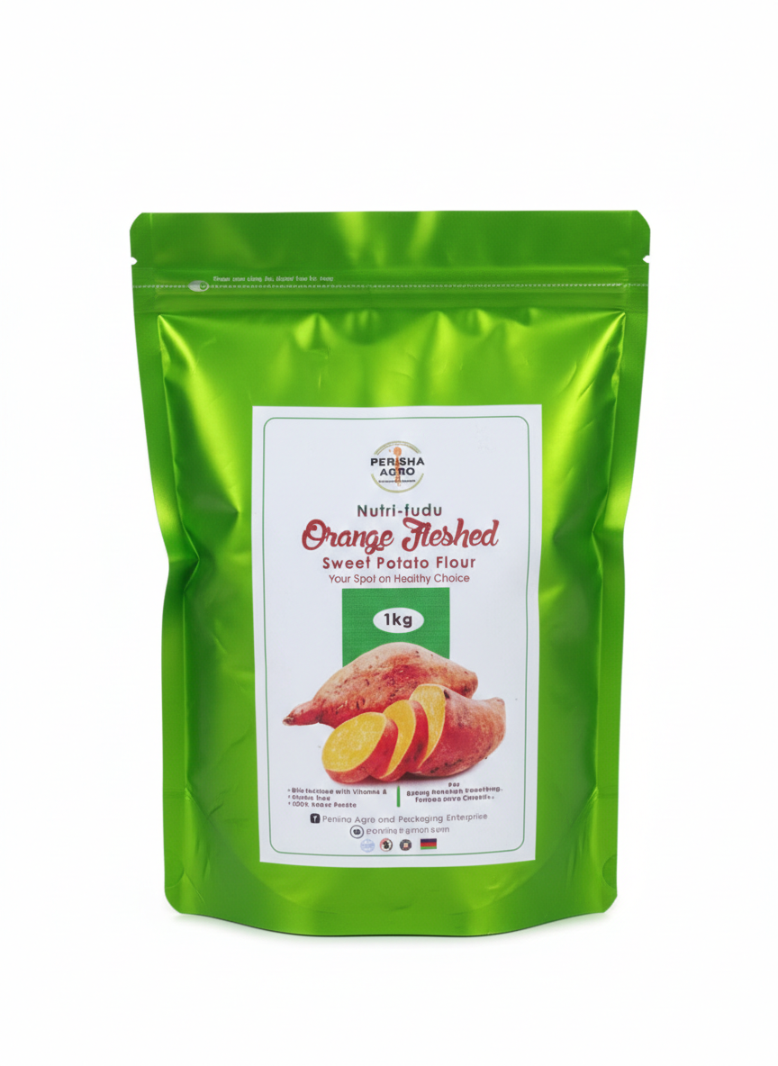 Perisha agro and packaging enterprise' sweet potato flour , biofortified with vitamin A, gluten free, 100% sweet potato